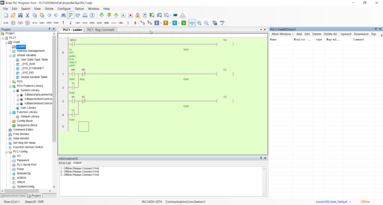 Chào bạn! Dòng PLC Xinje XD5 là dòng sản phẩm mạnh mẽ, hiệu suất cao với tốc độ xử lý nhanh và hỗ trợ nhiều tính năng như phát xung (High-speed pulse), truyền thông Modbus, và điều khiển PID. Để lập trình dòng này, bạn sẽ sử dụng phần mềm XDPro. Dưới đây là hướng dẫn cơ bản để bạn bắt đầu: 1. Chuẩn bị phần mềm và