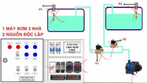 Cách đấu 1 mô tơ cấp nguồn từ 2 nguồn điện 2 bồn nước khác nhau?
