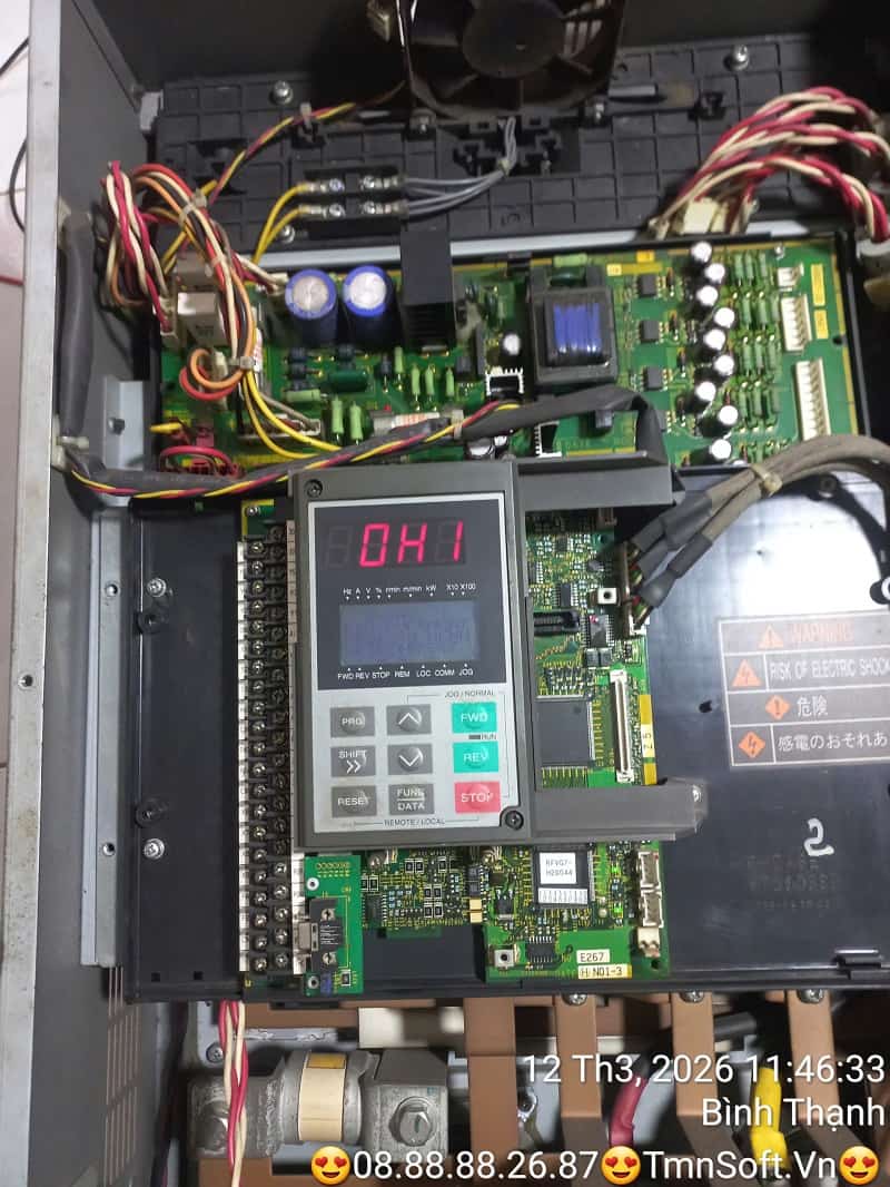 Lỗi OH1 (Heat Sink Overheat) là lỗi quá nhiệt tấm tản nhiệt. Lỗi này xuất hiện khi hệ thống phát hiện nhiệt độ của khối công suất (IGBT) tăng vượt quá ngưỡng giới hạn cho phép nhằm bảo vệ an toàn cho linh kiện.