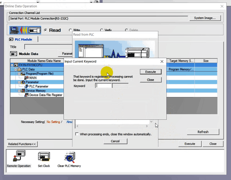 Sao lưu (Backup): Ngay sau khi mở khóa thành công, việc đầu tiên cần làm là Read from PLC và lưu lại một bản dự phòng trước khi thực hiện bất kỳ thay đổi nào.