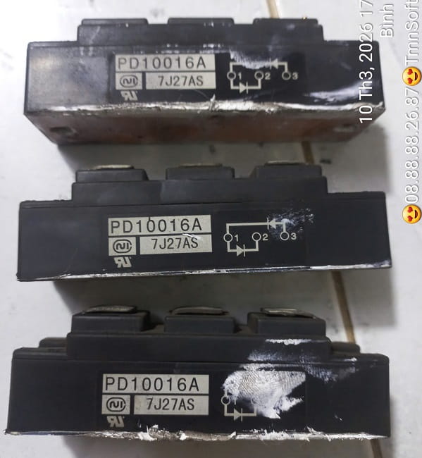 Thay thế: Nếu không tìm được đúng mã PD10016A, bạn có thể thay thế bằng các dòng module diode có thông số 100A và 1600V (ví dụ: dòng MDS100-16 hoặc tương đương).